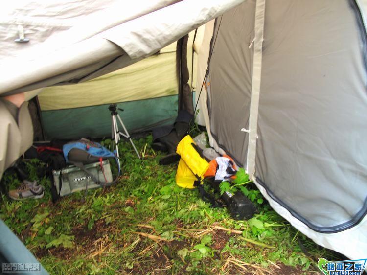 我們駐紮的營地為多個個人住宿帳蓬,再加上一個餐飲帳蓬所構成的營地,是次乃本人首次在外露營,的確有點不是太習慣,尤其是洗澡及上廁所都是不方便之事呢,勘察加半島正值夏季,早上平均温度也有十多度,入黑後就會下跌到四五度左右,雖然有個人帳蓬作休息,但是本人的所準備的睡袋(已標註可應付五度左右的低温)起不到預期的保温效能,若果外間下著小雨的話就更慘了,幸而本人尚算帶備有足夠的保暖衣服,每晚入睡前必需穿得厚厚的才能入睡。