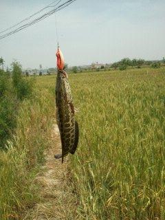 这是第一次发贴,心里很激动哦,加上文笔不好(高中作文总是得46分,呵呵)大家请凑合着看吧,以后慢慢向大家学习咯。本人以前一直玩台钓几年,从2011开始认识路亚,我感觉时尚,简单,高雅,以后深深地迷上了,中毒不浅哦。去年在水库搞了几天,每次打龟,这里缺少对象鱼,只有 青梢,鲶鱼,黑鱼,但是都很少。可能是这个原因,加上是新手,没有技术,确少耐心,只玩了几次就放弃了。今年尤其气温升的比较慢,水库鲤鱼一直不开口,加上毒瘾发作,所以拿起去年废弃的武器,然后买了个鱼猎人雷蛙,原价26, 店主处理给我20元。来到水库上透透气,也不想能上鱼。但是奇迹还是发生了,我发现水库一脚,水很浅,30公分,不是很清澈,估计是雷鱼活动造成的。但是雷雨要晒太阳,很多的鱼在水面上不动,有的游来游去,有的不是头出水面换气,鱼真的很多,最少有20多条哦,因为是第一次用雷蛙,不知道手法,我就看见鱼,然后抛投到鱼的前面,一直慢慢的收线,不停顿。有的鱼吓跑了,但是还是有一只不怕死的追了过来,因为它在水面上晒太阳,我看的非常清楚,只见在千钧一发之际,它一口扑上来,要强奸哦。吓我一跳,心跳到嗓子眼了。。。当然不是强奸我哦,哈哈。。。因为是第一次,加上没有心理准备,此处心情无法用言语表达哦。你们自己去体会吧。我条件反射,瞬间发力,扬杆,中鱼,可怜一条大概一斤的小黑鱼被我一下从水里飞到岸上了,我估计鱼还没有反应过来哦,心想TNN的,青蛙怎么这么厉害,吃了美国伟哥吗???怎么把我从水里搞上岸了。一定很郁闷哦。哈哈,路亚破处就这样完成了,每每没有事情做的时候回想起来,总是令我莫名的兴奋哦,之后上午还有2口,没有钓上来,后来看了网上的一些文章说,鱼吞蛙后要等个2-3秒后在暴力扬杆。一看时间12点半了,赶紧开车回家吃放咯。怀着激动的心情回到家吃完饭,赶紧又到水库了,可惜天气有点变化,风大了2-3级,晴转阴了,一直到4点半,鱼开口更猛了,一共有6口,4口炸水没有中鱼,一口中鱼,但是看见它洗鳃,蹦出水面,非常疯狂,目测至少5斤。跑了,真是很糟糕,但是还是中了一尾2.8斤的。我看见它尾随雷蛙,我放慢速度,只见它身体弯成弓形,像一支离玄之箭,一口吞下雷蛙,强奸成功。总之破处之旅很顺利,收获2尾,本来是应该放流的,但是因为是第一次,我要带回家炫耀一番,所以没有放,呵呵,以后我上来我一定合理取用,一定放流。