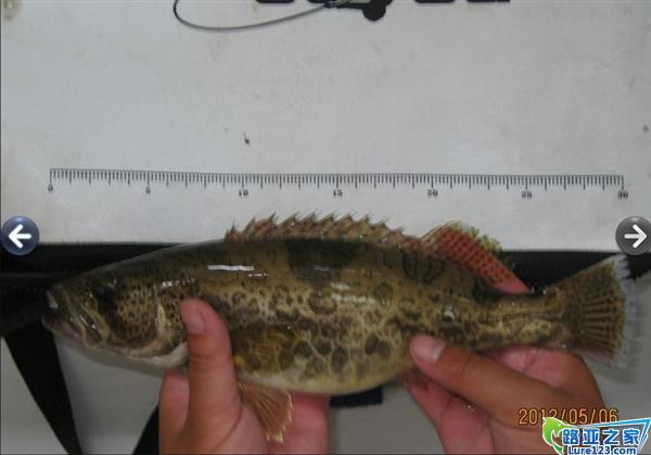 混混沌沌弄到中午吃好饭,继续路亚边走边甩甩甩。走到一面一处礁石边,米若打出去20几米,快慢结合收线,到离脚还有3 4 米远的地方,看到米若风骚的姿态往我这边靠近,以为又是空杆,突然,对,突然发现后面有一团阴影跟了上了,还没看清楚是何物时,一个非常有力的咬口,这时脑子一片空白,兴奋,爆起。收线,鱼儿出水。黑呼呼,牙齿非常凶猛的鱼上来了,因为新手,没有鱼扣,也没有起鱼的钳子,所以用大拇指伸入鱼口,还好没咬我。什么鱼,,我不认识,惭愧啊。误打误撞上来的。边上一朋友看到,哇,鳜鱼。野生的鳜鱼,极品啊。 哇哦,哥今天终于破处啦,还是极品处,爽歪歪了。