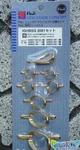 钛金属,钛金属由于其特性-轻和价值比较高所以只用于非常高级的钓竿,FUJI 中钛金属支架的导眼必定只有SIC环或金环,并且配有一个钛金属导眼的吊牌,下图: