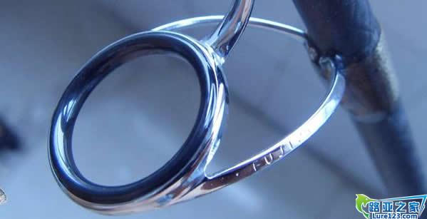 金环:富士最顶级的钛色金属瓷环,是由陶瓷与金属混合的复合材质,具有很强的耐冲击性,硬度极高不易被任何渔线割出痕迹,可以薄形设计以减轻重量,能快速的传达感应微波鱼讯,超高的热传导率,能迅速的散发鱼线与瓷环摩擦所产生的热量.目前只有部分品牌最高级的产品用到,比如说MEGABASS的F4 系列的顶导眼,目前里说并不是很常见。