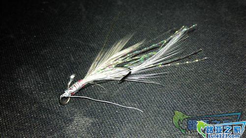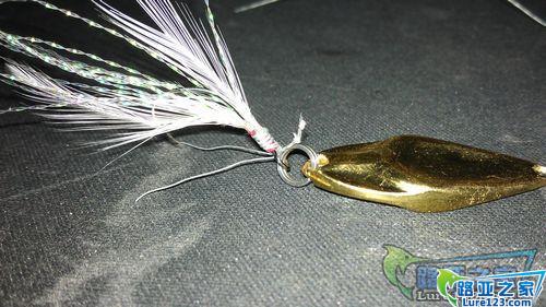 还有一部分亮片因为其独特的造型必须配合水阻大的尾部力量才能产生效果;这时候就必须换带毛的单钩(毛的作用主要是 产生尾部阻力使其亮片产生左右大幅度的来回摆动其次才是吸引鱼类)!
